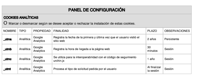 analítica y las de publicidad y afiliación, quedando exceptuadas las de carácter técnico y las necesarias para el