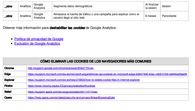 COOKIES UTILIZADAS EN ESTE SITIO WEB